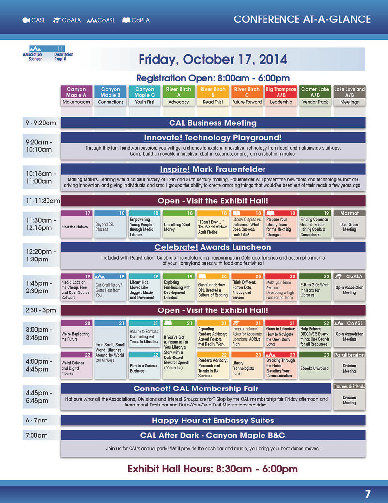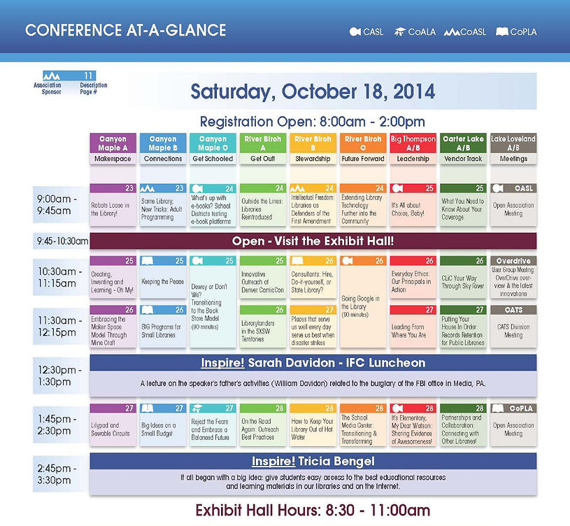 Check out the list below to see what programs will be at CALCON14! Based on feedback from prior years, we are trying to organize the accepted submissions into our first track approach. The tracks are listed here along with the names of the sessions that will make up the tracks. We have tried to target the tracks to the wide variety of library interests represented in our membership.