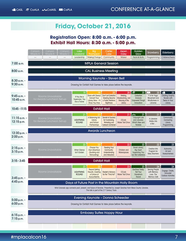 Check out the list below to see what programs will be at MPLA/CALCON16! The tracks are listed here along with the names of the sessions that will make up the tracks. We have tried to target the tracks to the wide variety of library interests represented in our membership.